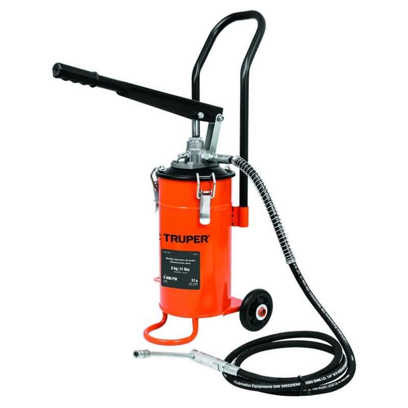 Descripción *Alta presión *Bomba y tapas ensambladas de fácil llenado *Incluye plato seguidor que evita filtraciones de aire *Manguera 2,17m *Presión de salida 5,800 PSI *Flujo 3,1gr *cubeta 16x30cm