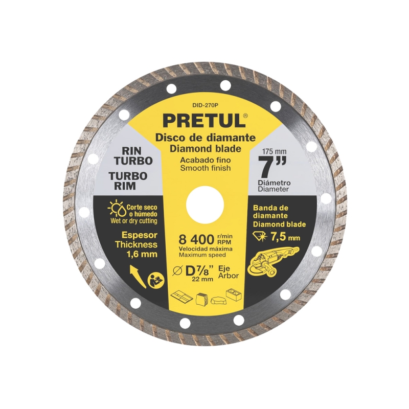 DISCO CORTAR PRETUL (TRUPER) DIAMANTADO TURBO # DID-270P 7" (27018)