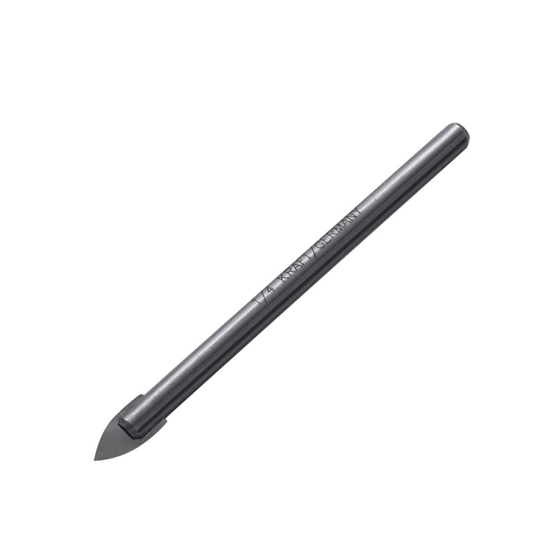 Descripción BROCA PARA VIDRIO KRAFT BOHRER (DEBOR) GERMANY 6 MM Largo total 65 mm Cuerpo cilíndrico de acero, plaquita de carburo afilado ojiva, sujeción cilíndrica, estuche individual NO UTILIZAR PARA TALADRAR VIDRIO TEMPLADO.