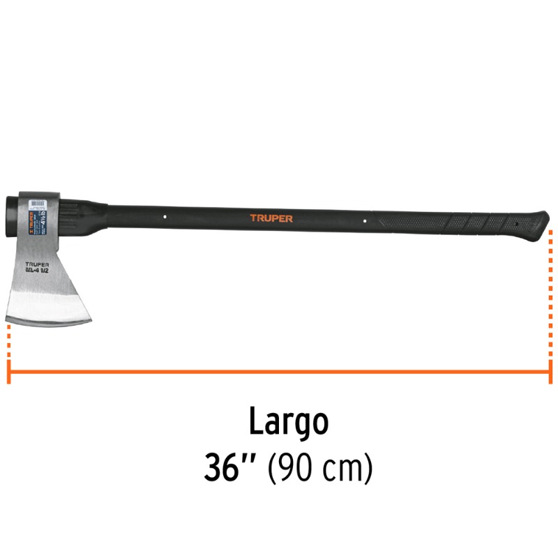 Descripción HACHA TRUPER MEDIA LABOR 4.1/2 LBS. # ML-4-1/2M C/MANGO FIBRA 36" Media labor, mango de fibra, cabeza forjada en acero alto carbono, mango 90 cms