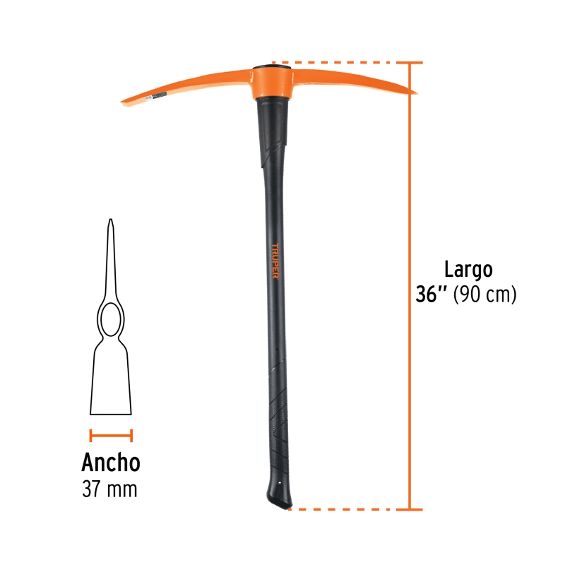 Descripción PICOTA TRUPER 7 LBS C/MANGO FIBRA DE VIDRIO #ZP-7M Cabezas forjadas en acero al carbono Mangos de fibra de vidrio El diseño de los mangos permite un agarre seguro y cómodo Ideales para desenterrar raíces y romper tierra dura