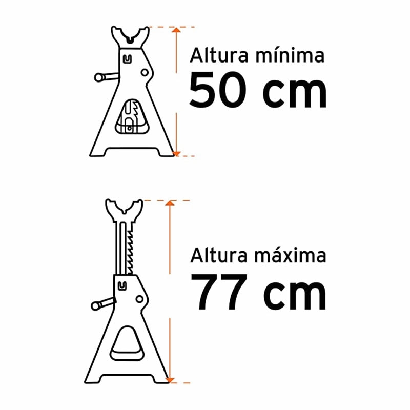 Palanca ajuste, base ancha para mejor estabilidad. Altura máx.77cm mín.50cm