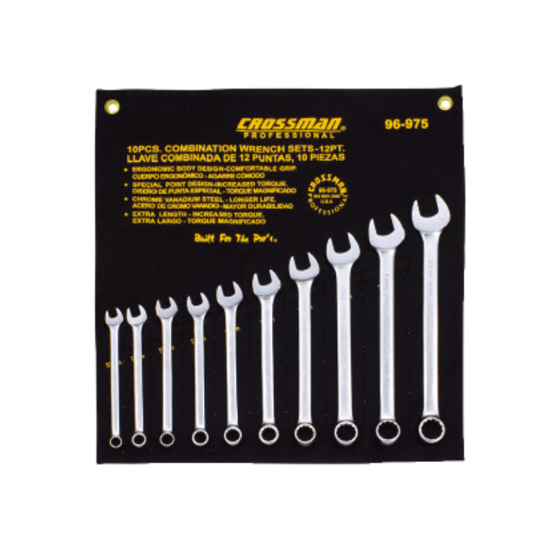 Descripción LLAVE P Y C CROSSMAN # 96975 10-22 MM 10 PZ. Medidas: 10 - 11 - 12 - 13 - 14 - 15 - 17- 19 - 21 - 22 mm Cromo vanadio