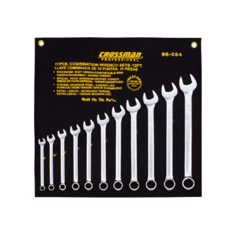 Descripción LLAVE P Y C CROSSMAN # 96084 3/8" - 1" 11 PZ. Medidas: 3/8” - 7/16” - 1/2” - 9/16” - 5/8” - 11/16” - 3/4” - 13/16” - 7/8” - 15/16” - 1 Cromo vanadio