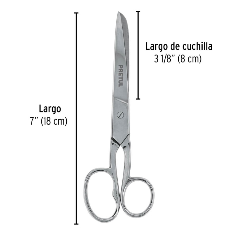 Descripción TIJERA PRETUL (TRUPER) P/COSTURA OJO GRANDE 7" # TP-8341-7 Para costura, ojo grande, acabado cromado