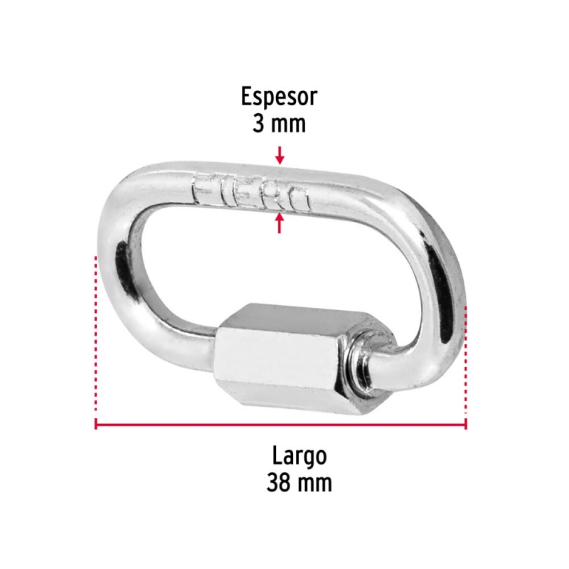 Descripción ESLABON RAPIDO TRUPER 1/8" #BSE-1/8 (BANSE-1/8) Fabricados en acero al carbono Para arrastre, sujeción y anclaje Conexión rápida a cadenas cables y accesorios Carga de trabajo 100kg