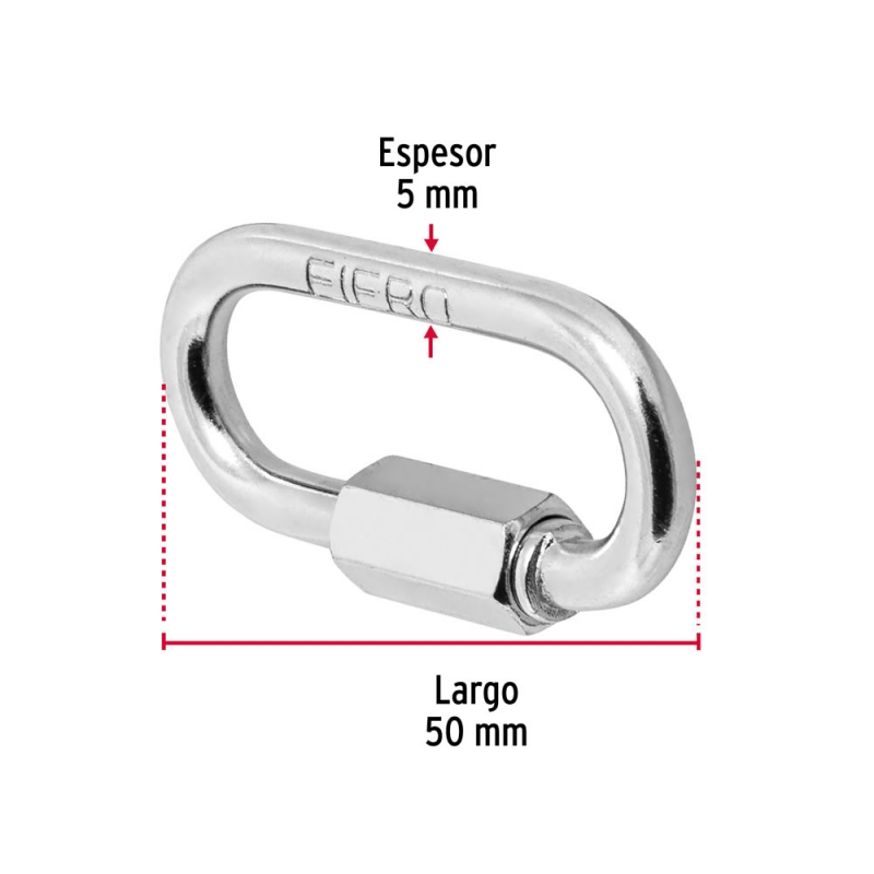 Descripción ESLABON RAPIDO FIERO (TRUPER) 3/16" #BSE-3/16 (BANSE-3/16) Fabricados en acero al carbono Para arrastre, sujeción y anclaje Conexión rápida a cadenas cables y accesorios Carga de trabajo 300kg