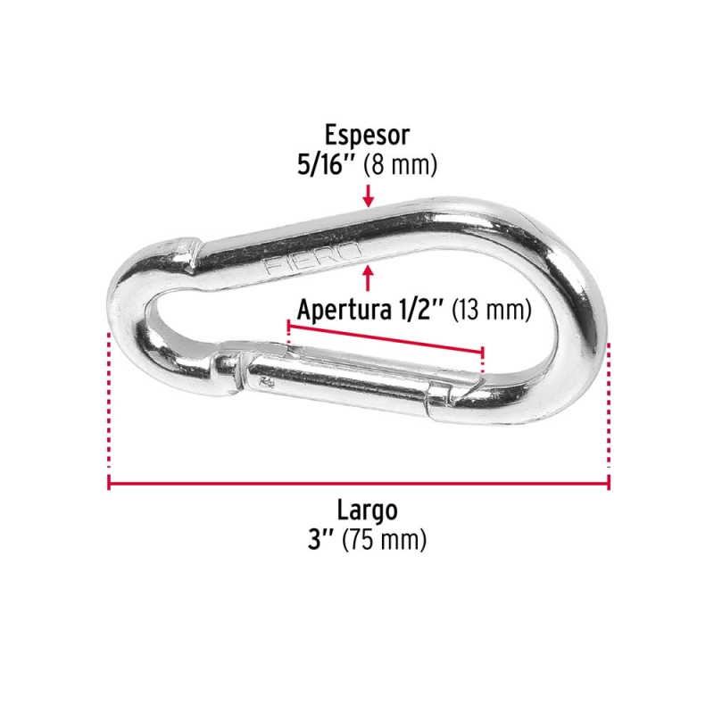 Descripción MOSQUETON TRUPER FIJO ACERO 5/16" # BMA-5/16 (BANMOS-5/16) Largo 76mm, límite carga 230 kgs. Ideales para conexiones de cables y cuerdas