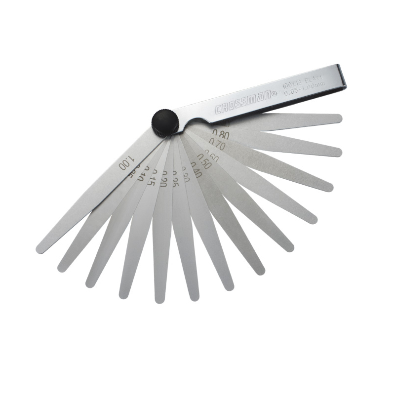 Descripción FEELER CROSSMAN MILIMETRICO 13 PZS. # 68-563 13 hojas: 0,05 - 0,10 - 0,15 - 0,20 - 0,25 - 0,30 - 0,40 - 0,50 - 0,60 - 0,70 - 0,80 - 0,90 - 1,00 mm