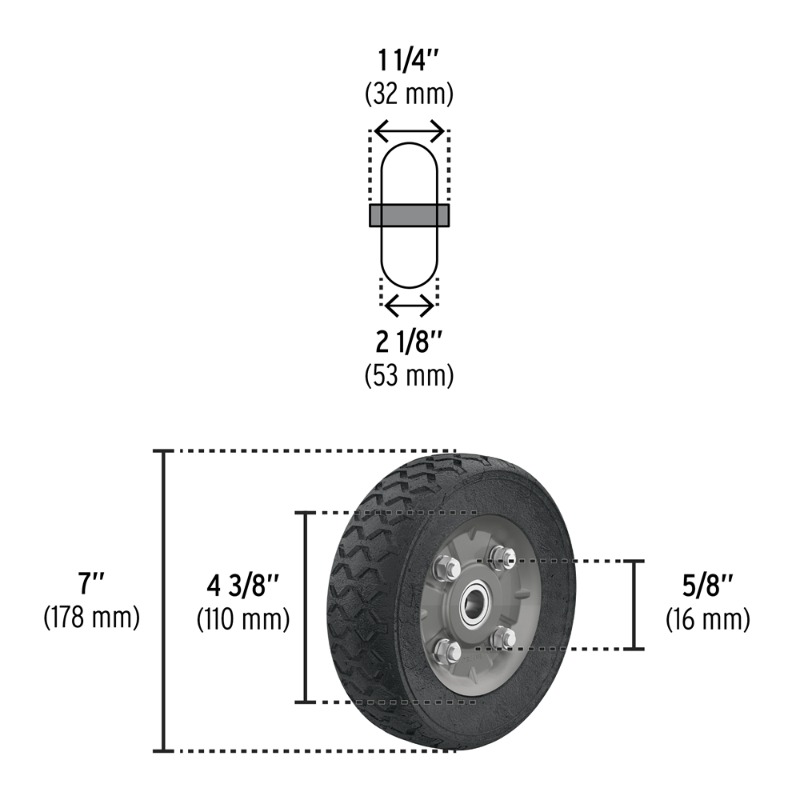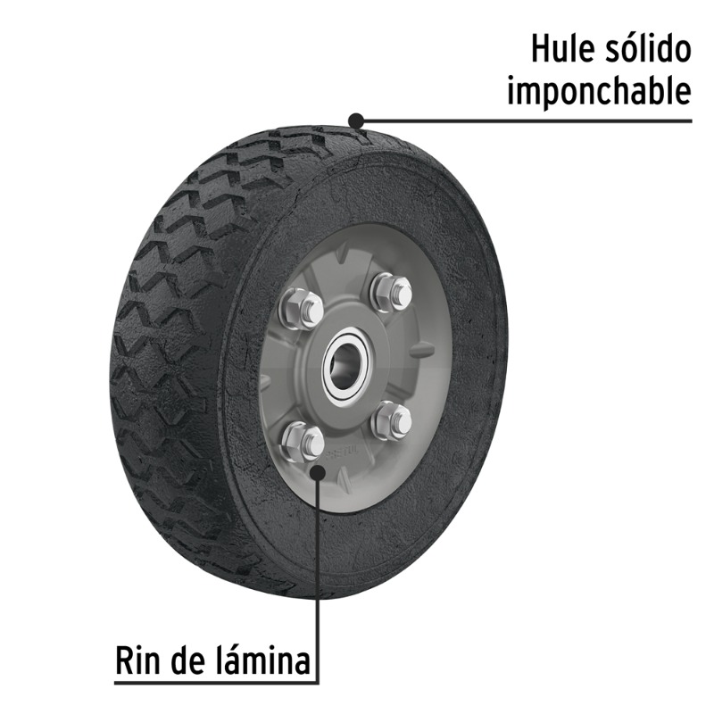 Descripción RUEDA P/CARRO T/ YEGUA COMPLETA PRETUL (TRUPER) IMPONCHABLE 7" #RD-72 Carga máx. 95kg Ruedas de hule sólido imponchable, en color negro Eje central sin tubo, Eje 5/8"
