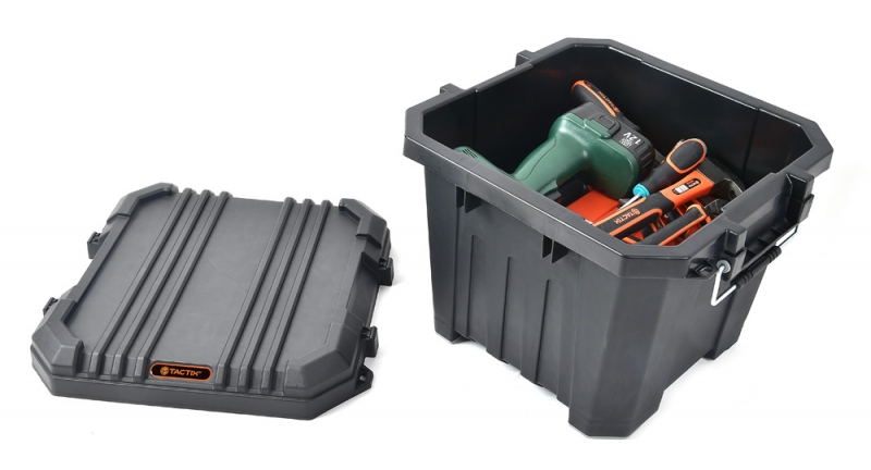 Descripción Construcción estructural robusta, apilable, 4x Patas blandas, fácil de abrir, pestillo de metal resistente y duradero. Ideal para el almacenamiento de artículos grandes, herramientas y accesorios