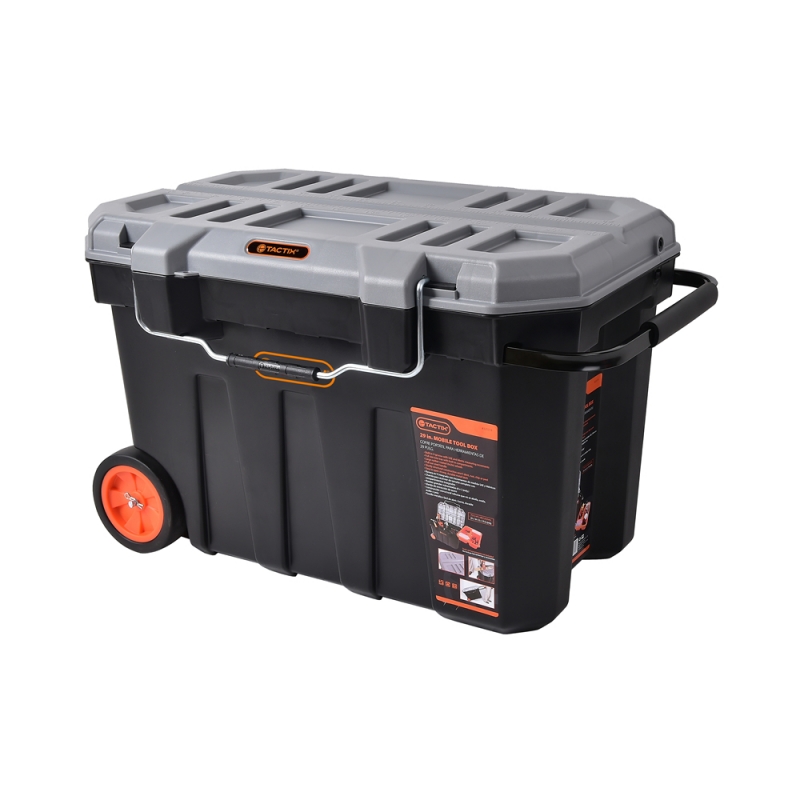 CAJA HERRAMIENTAS TACTIX #320314 29" PLAST.C/BANDEJA Y RUEDAS - Bandeja de tamaño completo con compartimentos integrados - Ruedas grandes recubiertas de goma de 15 x 5 cm (6 x 2 pulg.) - Fácil de abrir, pestillo de metal resistente y duradero - La construcción estructural resistente no se abolla, oxida, astilla ni pela.