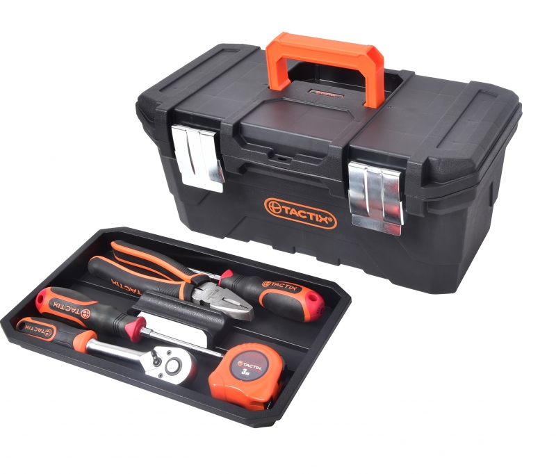 Descripción CAJA HERRAMIENTAS TACTIX #320341 16" PLAST.C/BANDEJA - Pestillos de acero de alta resistencia - Bandeja de transporte extraíble