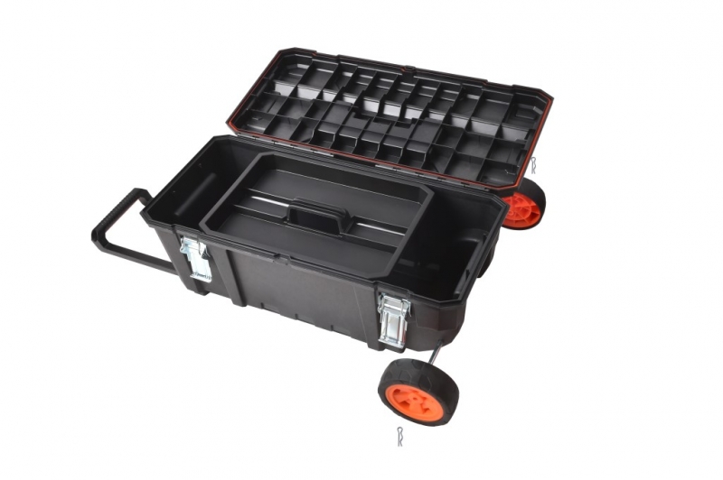 Descripción CAJA HERRAMIENTAS TACTIX #320394 28" PLAST.C/RUEDAS 71,2X33,6X30,0 CM - Caja de herramientas profesional para trabajos pesados - Resistente a la intemperie - Ruedas grandes recubiertas de goma (15 × 5 cm) - Mango de acero extraíble