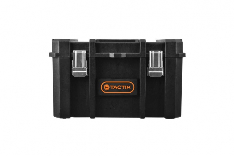 Descripción CAJA HERRAMIENTAS TACTIX #320361 C/ORGANIZADOR 37,1X52,8X28,4 CM. Caja de almacenamiento de espuma estructural durable. 61 lts aprox, pestillos de acero, manija de agarre suave. 2 organizadores removibles, separadores removibles. Pestillos al costado para conectar unidades adicionales (320360/320362)