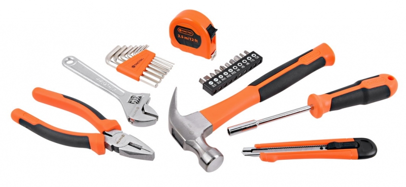 Descripción ESTUCHE TACTIX # 900194 C/24 HERRAMIENTAS P/HOGAR - 1 Martillo Carpintero 225gr - 1 Alicate Universal 6" - 1 Llave Ajustable 6" - 1 Cuchillo cartonero - 1 Huincha medir 3,5mts - 1 juego Llaves Allen 1,5-6 mm (8 piezas) Puntas: - Philips #1, #2, #3 - Carp. 5 y 6 mm - T-15, T-20 - Allen 4, 5, 6 mm