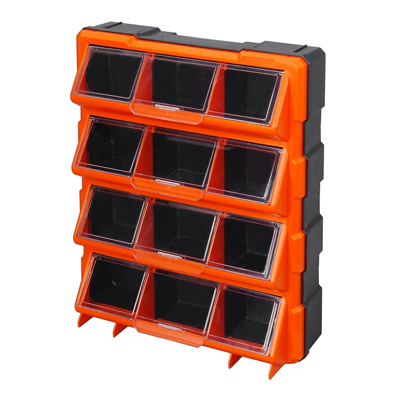 Descripción ORGANIZADOR TACTIX #320648 PLAST.- 46 X 36 X 12 CM - 12 COMPARTIMENTOS 12 compartimentos. Ideal para el almacenamiento de piezas pequeñas. Tapas transparentes. Montaje en pared