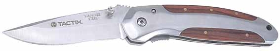 Descripción Hoja de acero inoxidable, función de bloqueo de seguridad, mango de madera de color con clip para cinturón