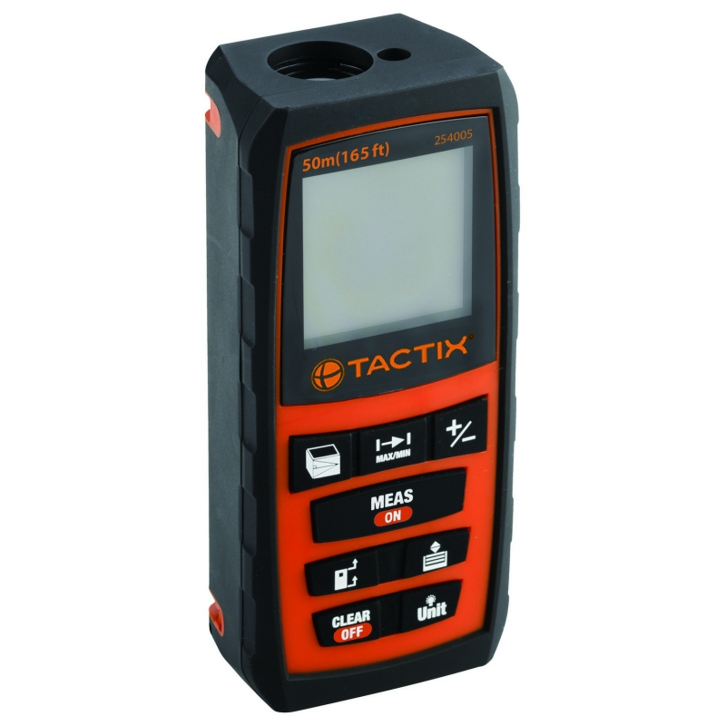 Descripción Rango de trabajo: 0,05-50m (165ft) Laser clase 2nm. Regla 4cm. Mediciones continuas. Máx salida <1mW, λ=630-670nm. Atornillador mini, 2 pilas AAA incluidas, con estuche