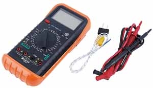 Descripción VOLTAJE AC 2V/20V/200V ± 0.8%/1000V ± 1.2% - VOLTAJE DC 200V/2V/20V/200V ± 0.5%/1000V ± 0.8% - CORRIENTE AC 2mA/20mA ± 1.0%/200A ± 1.8%/10A±3%) - CORRIENTE DC 2mA/20mA ± 0.8%/200A ± 1.5%/10A ± 2% - RESISTENCIA 200/2k/20k/200k/2mΩ ± 0.8%/2mΩ 1.8% 200mΩ ± 5.0% - TEMPERATURA (ºC)20ºC~ 1000ºC - FRECUENCIA 20Khz ± 1.5% Transistor hFE test: 1 ~ 1000
