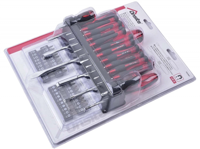 Descripción ATORNILLADOR ONSITE (TACTIX) # 702447 - 58 PIEZAS Punta Cruz #1 x 75mm (3"), #2 x 100mm (4"), #2 x 38mm (1-1/2") Punta Paleta 8 x 150mm (5/16 x 6"), 5 x 75mm (3/16 x 3") 6 x 100mm (1/4 x 4"), 6 x 38mm (1/4 x 1-1/2") Precisión Paleta 3/32, 1/8, 5/32" Precisión Cruz #00, #0 Precisión Torx T-6, T-7, T-8, T-9, T-10 Mango Adaptador 100mm (4") Puntas : Paleta 1/8, 5/32, 3/16" (2pzs), 7/32, 1/4" (2pzs), 9/32" PH- #0 (2pzs), #1 (2pzs), #2 (2pzs), #3 (2pzs) PZ #0, #1, #2 (2pzs), #3 HEX- 1/16, 5/64, 3/32, 1/8, 5/32, 3/16, 7/32, 1/4" Torx T-8, T-10, T-15, T-20, T-25, T-27, T-30, T-40 Punta Cuadrada S1, S2, S3