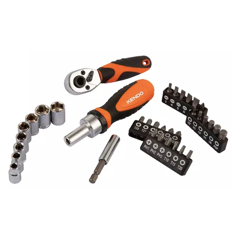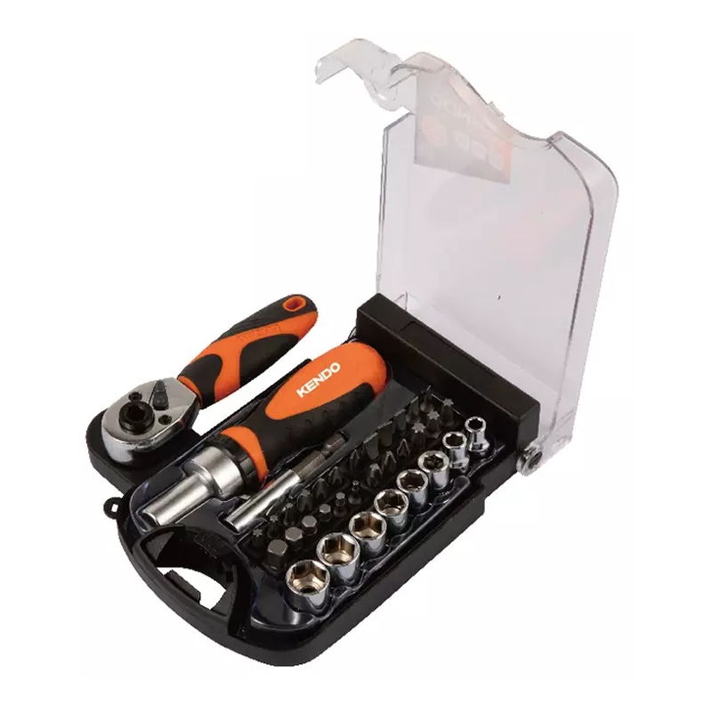 Descripción Accesorios 1/4": Chicharra - Mango con chicharra - Adaptador 25mm - Soporte magnético - 8 Dados SH 5 - 6 - 7 - 8 - 9 - 10 - 11 - 12 mm - 23 Puntas: Carpintero 3 - 4 - 5 - 6 - 7 mm; H2 - H3 - H4 - H5 - H6; PH0 - PH1 - PH2 - PH3; PZ1 - PZ2 - PZ3; Torx : T10 - T15 - T20 - T25 - T27 - T30