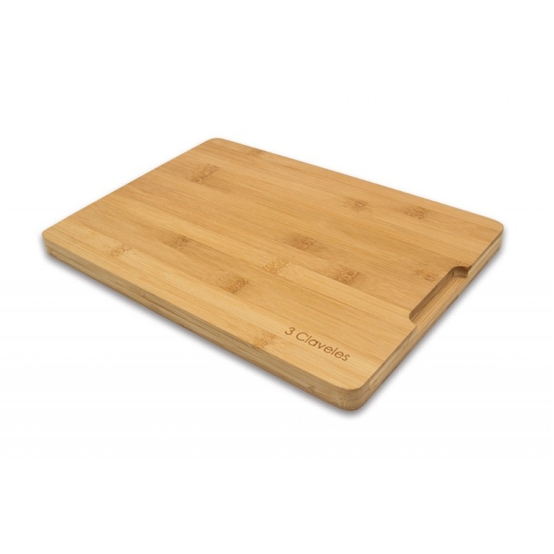 Descripción TABLA DE CORTE TRES CLAVELES BAMBU # 4665 COCINA 33,0 X 23,0 CM Tabla de corte de Bambú. Para cortar y picar alimentos. - Medidas: 40 cm x 30 cm x 2 cm. - Protege el filo de los cuchillos. - Colocar siempre en una superficie plana.