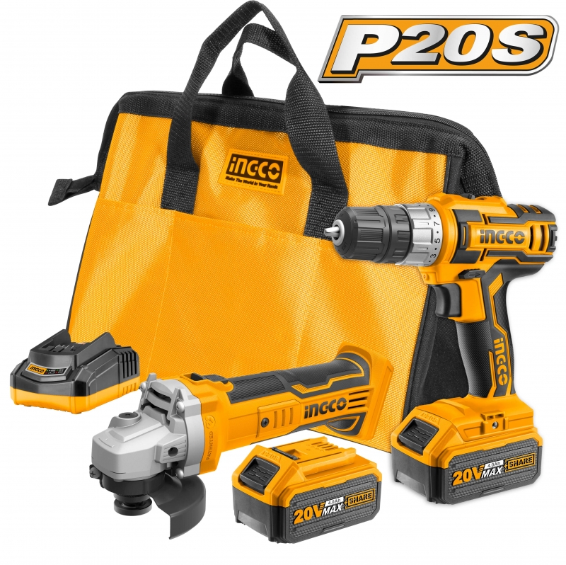 Descripción ESMERIL ANGULAR INALAMBRICO 20V + TALADRO INALAMBRICO INGCO 20V #CKLI2009 (C) 1 Taladro 2 velocidades (CDLI20024) 1 Esmeril angular (CAGLI1151) 2 Baterías 4.0Ah 1 Cargador rápido (2hr) 1 Disco desbastar Luz de trabajo integrada LED Bolsa de lona TALADRO CDLI20024 POTENCIA: 20V VELOCIDAD SIN CARGA: 0-400/0-1500/min MAX.TORQUE: 45NM CAPACIDAD DE PERFORACION: 0.8-10mm AJUSTES DE PAR: 15+1 VOLTIOS DE CARGA: 220V-240V~50/60Hz ESMERIL ANGULAR CAGLI1151 POTENCIA: 20V VELOCIDAD SIN CARGA: 8500/min DIAMETRO DISCO: 115mm ROSCA HUSILLO: M14