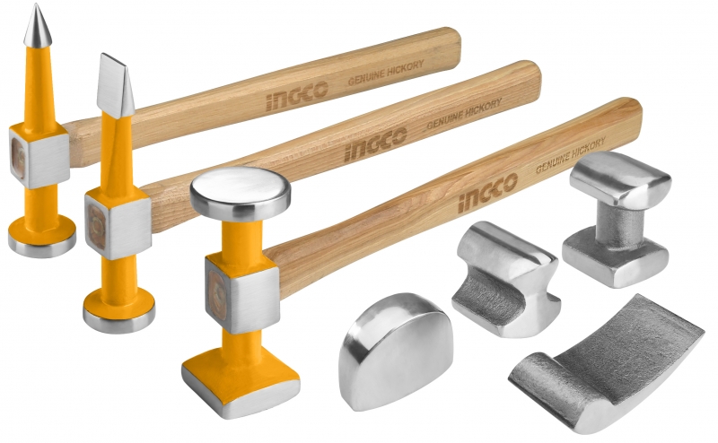 Descripción MARTILLO INGCO DESABOLLAR M/MADERA JGO.7 PCS # HBAFH0711 Cabezas forjadas 1 Martillo punta cincel 1 Martillo de pico 1 Martillo de impacto 1 Carro retráctil 1 Carro doble extremo 1 Carro curvo 1 Tacón de pie