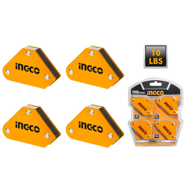 Descripción ESCUADRA MAGNETICA INGCO PARA SOLDAR JGO.4 PZAS. # AMWH4001 4 escuadras de 10lbs Ángulos: 45 °, 90 °, 135° Material: imán y acero