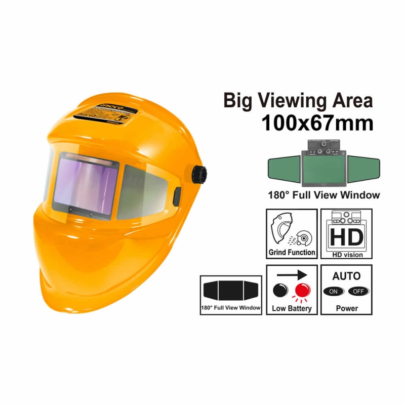 MASCARA SOLDAR INGCO FOTOSENSIBLE INDUSTRIAL # AHM006 Calificación óptica: 1/1/1/1 Área de visualización grande: 100 x 67 mm Sensores: 4 Estado de la luz: DIN 3 Estado oscuro: DIN 5-9 / 9-13 Protección UV/lR: hasta DIN 16 Tiempo de cambio (claro a oscuro): <0,04 ms Control de sombra y sensibilidad: interior y continuo. Control de retardo (oscuro a claro): interior y continuo, 0,15-0,80 s Amperios TlG clasificados: ≥2 amperios Modo de molienda: Sí, interior Material del casco: Naylon Peso: 560 g ± 5% Temperatura de funcionamiento: -5°C (23 °F) - +55°C (131 °F) Temperatura de almacenamiento: -20°C (-4 °F) - +70°C (158 °F) Fuente de alimentación: Panel solar y baterías de litio reemplazables 2 piezas * CR2032