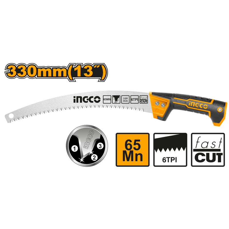 Descripción SERRUCHO INGCO PODAR DIENTES TRIPLES 13" # HPS33028C Dientes rectificados de precisión 3 filos, 7 dtes