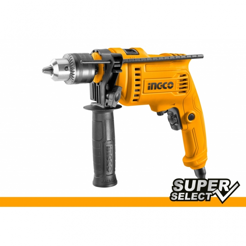 Descripción TALADRO INGCO PERCUTOR 680W SUPER SELECT # ID6808 Velocidad variable Interruptor de avance / retroceso Función de martillo VOLTAJE: 220-240V~50/60Hz ENTRADA DE PODER: 680W VELOCIDAD SIN CARGA: 0-3000rpm CAPACIDAD DE PERFORACION: 13mm