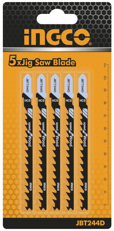 HOJA PARA SIERRA DE CALAR MADERA INGCO 5PZAS JBT244D Longitud del diente: 74 mm 6 TPI HCS triscado lateral rectificado Madera blanda (5-50 mm) tableros de virutas, madera contrachapada con núcleo de madera, tableros de fibra, especialmente para cortes curvos.