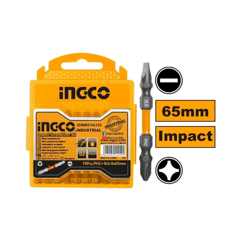 Descripción PUNTA INGCO IMPACTO PH2-CARP.#6 65MM JGO.10 PZS #SDBIM21HL133 Superficie negra con imán Acero industrial S2