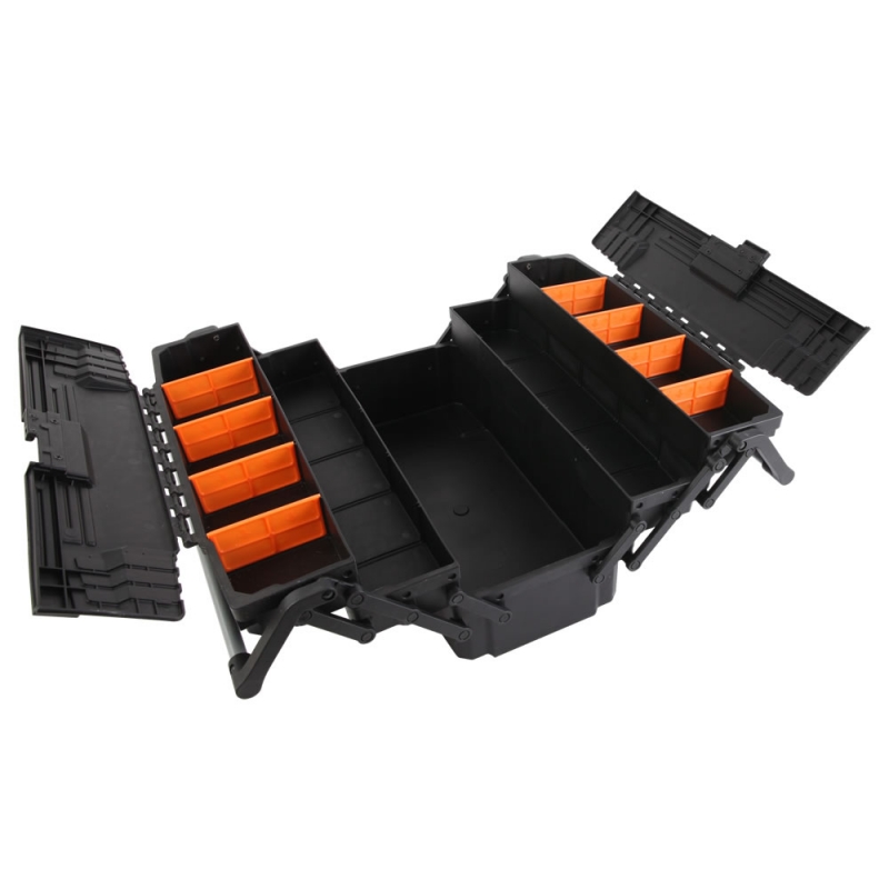 Descripción CAJA HERRAMIENTAS KENDO #90275 PLASTICA BANDEJAS PLEGLABES Separadores interiores extraíbles Resistencia 92 kgs aprox.