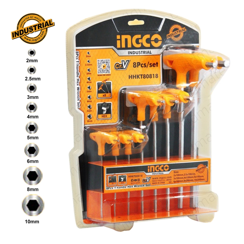 Descripción LLAVE ALLEN INGCO TIPO "T" INDUSTRIAL 2 - 10 MM JGO 8 PZ #HHKT80818 Medidas: 2,0 - 2,5 - 3,0 - 4,0 - 5,0 - 6,0 - 8,0 - 10,0 mm