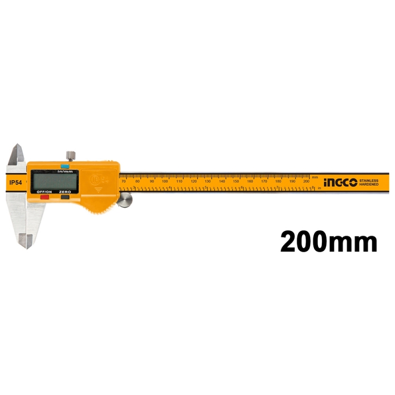 Descripción PIE DE METRO INGCO DIGITAL 0-200 MM # HDCD28200 Conversión del sistema métrico/pulgadas en cualquier posición Capacidad máxima: 0-200 mm / 0-6” Lectura: 0.01mm Batería 3V