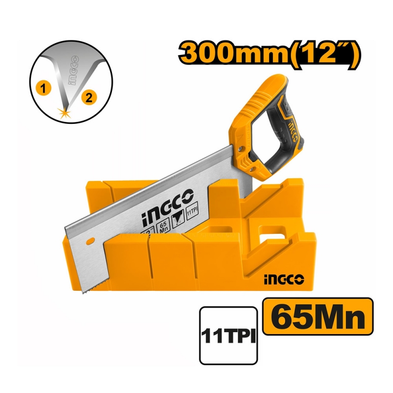 Descripción INGLETE INGCO 300MM C/SERRUCHO # HMBSK30082 Con serrucho de costilla 12"/300mm 11 TPI Tamaño 300 × 140 × 80 espesor 20 mm