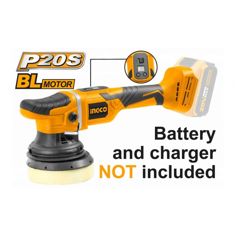 Descripción PULIDORA INGCO ORBITAL INALAMBRICA 20 V 125 MM # APLI2002 LCD Velocidad de pantalla mostrada Almohadilla y Capó de pulido Motor sin escobilla Batería y cargador no incluido VOLTAJE: 20V VELOCIDAD SIN CARGA: 2000-4800rpm/min DIAMETRO DISCO: 125mm