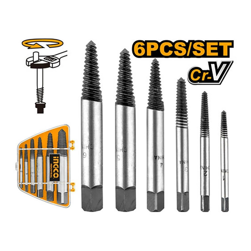 EXTRACTOR PERNOS INGCO 6-25 MM JGO.6 PZAS. # ASE106