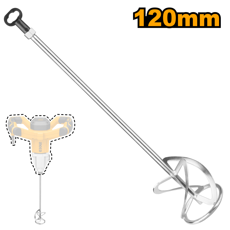 Descripción VARILLA MEZCLADOR PINTURA-MORTERO INGCO 600 MM # MP1120 Diametro 120mm Longitud: 600 mm Accesorio de herramienta: M14x2