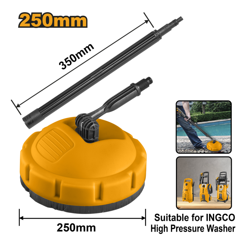 Descripción CEPILLO REDONDO INGCO C/EXTENSION P/HIDROLAVADORA # AMPB251 Tamaño:250mm Material: PP, PA66-30GP Con varilla de extensión de 455 mm