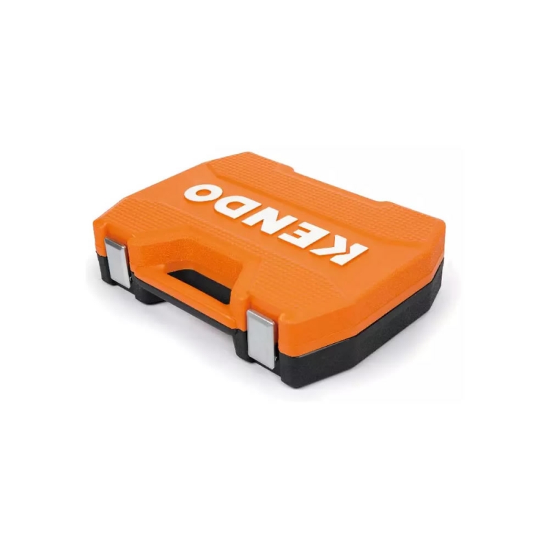 LLAVE DADO KENDO 1/2 DR #90565 JGO. 26 PZAS. 18 Dados Dr 1/2" (12PT) 10-11-12-13-14-15-16-17-18-19-20-21-22-23-24-27-30-32 mm 2 Dados para bujías Dr 1/2": 16 mm, 21 mm 2 Barras de extensión Dr. de 1/2" de 125 mm, 250 mm 1 adaptador de 3 vías: 1/2"(M) × 3/8"(F) 1 mango tipo L de 1/2" 310 mm 1 Junta universal Dr. de 1/2" 1 mango de trinquete Dr. de 1/2"