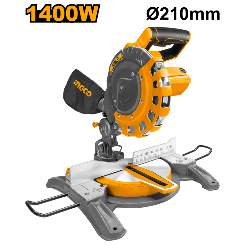 SIERRA INGLETEADORA INGCO 8"/210MM 1400 WATTS # BMS14007 VOLTAJE: 220-240V~50/60Hz POTENCIA ENTRADA: 1400W VELOCIDAD SIN CARGA: 5000rpm HOJA: 210 mm (8.1/4") Eje 25,4 (1") CORTE EN INGLETE: 0-45° a la izquierda y a la derecha CAPACIDAD MÁXIMA CORTE: 60 mm x 120 mm CAPACIDAD DE CORTE: INGLETE/BISEL (alto x ancho) 0°/0°: 60mmx120mm 45°/0°: 60mm x 85mm 0°/45°: 34mm x 120mm 45°/45°: 34mm x 85mm CORTES A INGLETE: de 0 a 45° a izquierda y derecha CORTES A BISEL: 45° hacia la izquierda Incluye: 1 juego escobillas de carbón adicionales 2 barras de extensión 1 hoja TCT 1 Uds bolsa para el polvo