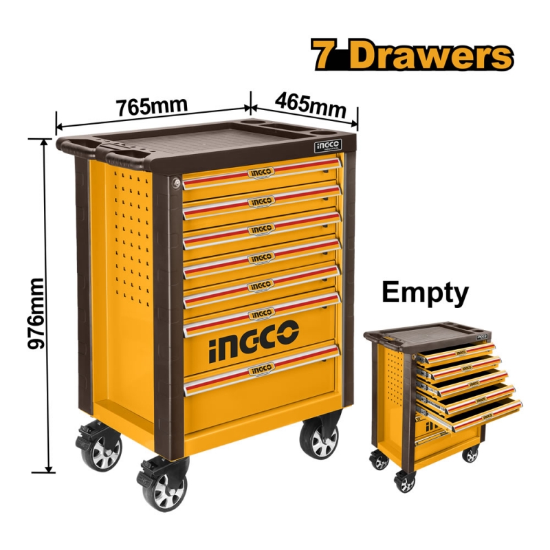 CAJA HERRAMIENTAS INGCO METALICA 765X465X812 MM C/RUEDAS Y 7 BANDEJAS # HDTC01072