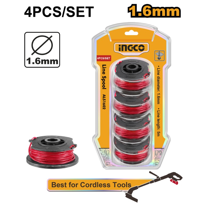 NYLON INGCO P/ORILLADORA 1,6 MM JGO.4 BOBINAS DE 5 MTS. C/U #ALS1602