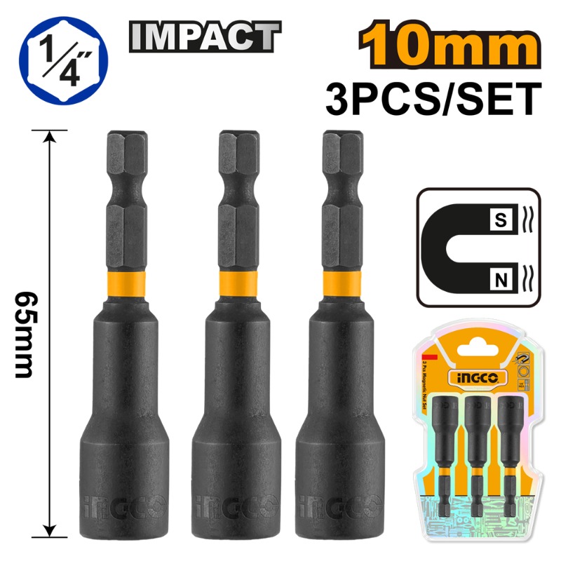 ADAPTADOR INGCO MAGN. DE IMPACTO 1/4 DR PARA PUNTAS MAGN. JGO 3 PZAS. 10X65MM #AMN1031