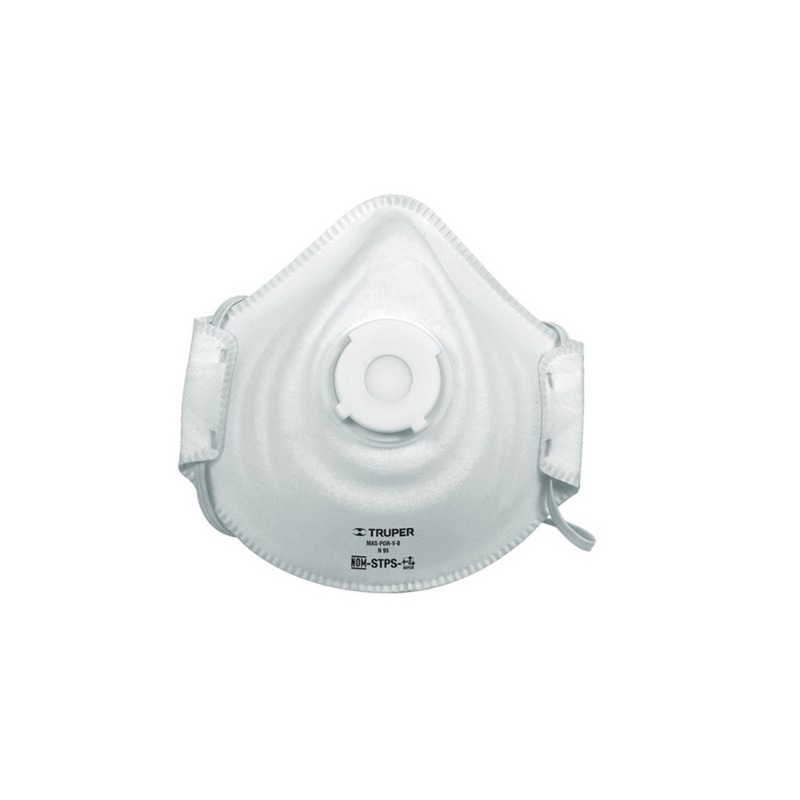 RESPIRADOR TRUPER C/ VALVULA P/POLVO Y PARTICULAS #MAS-POR-V-B Filtración mínima de 95% Banda nasal suave de espuma para mejor ajuste y protección Válvula de exhalación que facilita la respiración, reduce calor, humedad y empañamiento Costuras reforzadas que soportan una mayor tensión en el resorte Desechable