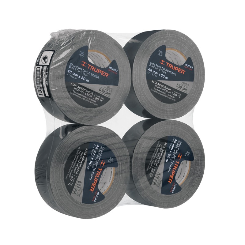 CINTA P/DUCTOS TRUPER NEGRA ADHESIVO TERMOFUSIBLE (PQTE 4 ROLLOS) #CDU-50XN (103063)